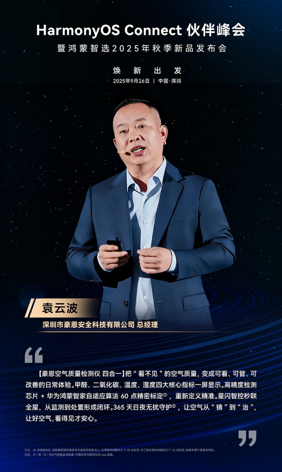 作為首批加入鴻蒙智選的生態(tài)合作伙伴之一,中安科全資子公司深圳市豪恩安全科技有限公司(下文簡稱豪恩)推出全新智能家居產(chǎn)品——鴻蒙智選 豪恩空氣質(zhì)量檢測(cè)儀。豪恩總經(jīng)理袁云波代表公司發(fā)表演講,中安科集團(tuán)副總裁胡剛蒞臨現(xiàn)場,共同見證。